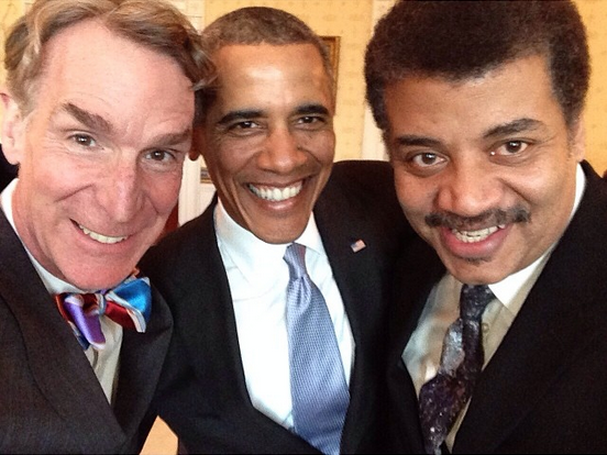 And in case you needed further proof of the president’s nerd cred, here’s a selfie he took with Tyson and Bill Nye the Science Guy.