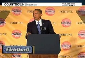 Tonight on his “Oddball” segment on Countdown, Keith Olbermann took a look at the strangest moment from President Barack Obama’s speech today – the Presidential Seal falling off his podium in the middle of his address.