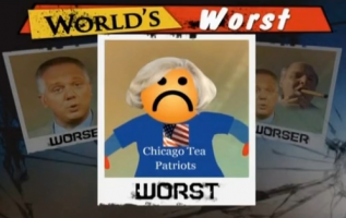 Olbermann didn’t go for the same level of nuance: on his MSNBC.com page, referred to the Chicago Tea Patriots in question as “heartless teabaggers.” Still, he had an eloquent moment at the end of the segment: