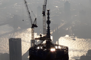 The skyscraper-in-progress tops off at a symbolic 1,776 feet, though there was disagreement as to whether its 409-foot spire was architecturally significant enough to the design to be included. Without the spire, the building would only reach 1,368 feet, second to the Chicago structure.