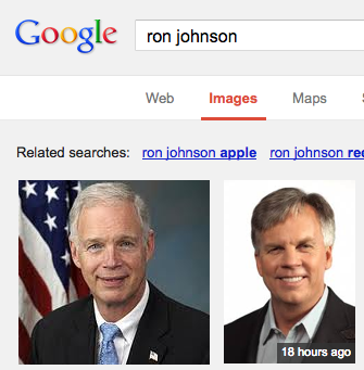 Anchor Natalie Morales reported the news of the CEO’s short tenure ending at retail giant JCPenney apparently without noticing the error made by the Today Show‘s graphics department. A Google image search for the name “Ron Johnson” reveals their slight visual similarities (that’s Sen. Ron Johnson on the left and former CEO Ron Johnson on the right).