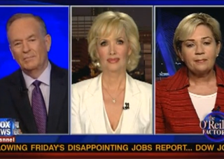 Mary Anne Marsh thought the birth certificate topic, which bothered Sununu so, was actually a good thing to talk about for the Romney camp. “When you pick a fight with the media you avoid engaging in a topic you don’t want to engage in,” she argued, in this case, the economy. She also thought it was legitimate to ask questions about Donald Trump: “if you are a Romney surrogate being asked about a Romney surrogate, you are responsible for that Romney surrogate.” O’Reilly disagreed, promising to never ask Marsh about Bill Maher.