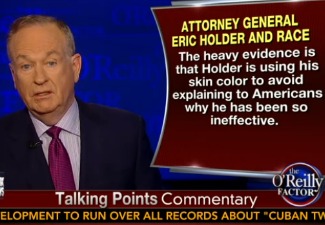 O’Reilly said Holder was “heavily implying” the race factor in not just how he’s treated, but in how President Obama is treated. He charged that Holder is “using his skin color as a shield to avoid explaining to the American people why he has been so ineffective on a variety of fronts.”
