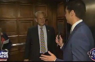 On Monday night’s O’Reilly Factor, Jesse Watters tracked down Democratic congressmen Steve Israel and Bennie Thompson over comments both men made about racism in the GOP. Watters followed both men, interrogating them about their remarks, and kept Israel in the elevator for a bit just so he could get a straight answer from him.