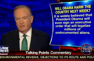 O’Reilly then wondered (again) whether Obama was drifting towards authoritarianism: “Remember, President Obama is a constitutional attorney. He knows that undermining immigration law is wrong. He knows the Founding Fathers did not want presidents to make law. Yet, Barack Obama doesn’t seem to care. That’s dangerous.”