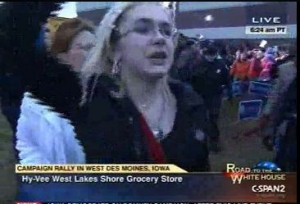 As Christie welcomed Romney to the stage, an Occupy protestor started shouting them down with cries of “You are one percent! You are one percent!” Unfortunately, as she was walking one way and looking the other, she accidentally hit a nearby pole. She walks away, seemingly unharmed, and the disruption did not appear to reach the stage, as Romney immediately launches into some words of praise for Christie.