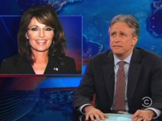 Palin has taken up the little media breathing room left with her unique retelling of Revere’s “Midnight Ride,” with which Stewart didn’t really have a problem. “She took a well-known historical event and turned it into word salad,” he noted in a forgiving tone, but then changed his mind with a clip of Fox News Sunday where Palin refused to admit that she had botched the story, rather than simply admit to “off-the-cuff word jumble.” Stewart ridiculed her costume (“you look like you’re about to marry Jesus in Vegas”) and noted that her argument that she had been routed by a “gotcha” question made no sense, as the question was “what have you seen so far today, and what are you going to take away from your visit?”