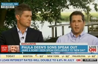 The attempt to rehabilitate embattled celebrity chef Paula Deen‘s reputation continued Tuesday morning on CNN’s New Day, as co-anchor Chris Cuomo interviewed Jamie Deen and Bobby Deen about the troubles facing their mom. The two men talked about their non-racist upbringing, and gave, as an example, the lesson they were taught by the struggles of baseball legend Hank Aaron.