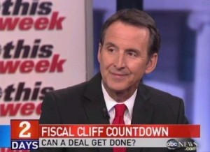 During This Week‘s roundtable, Tim Pawlenty took a swipe at fellow panelist Howard Dean as he spoke of falling off the fiscal cliff. Noting everyone’s desire to avoid that situation, T-Paw alluded to the good ole’ “Dean scream.”