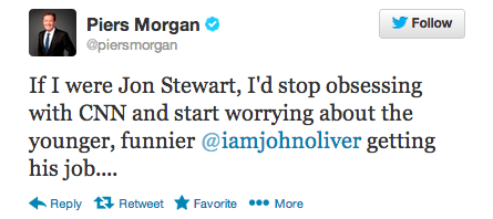 But given the context of last week’s tweet, in which Morgan warned that Stewart could soon lose his gig to fill-in host John Oliver, it’s not all that outlandish to think this was another attempt at a jab.