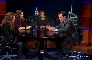 On Tuesday night’s Report, however, Colbert met his quick-witted match in Pussy Riot, the punk band whose members were imprisoned, then released, for insulting Russian President Vladmir Putin. Their feat was all the more impressive for the fact that they conducted the interview through a translator, which at first seemed like it might become drag on the interview.