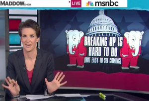 And that was before the Kochs distanced themselves from this whole fight. Maddow concluded that “the wheels are really coming off here” and if these come-to-Jesus moments keep on coming, the shutdown fight may come to a swift end soon.