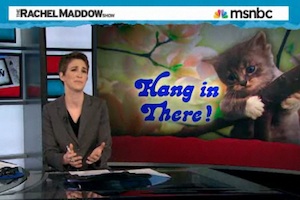 The missteps include the reading of the Constitution on the House floor (excepting the parts that they didn’t like or where pages where stuck together); the constitutional crisis of having to swear in to Republican members of the House who oddly took the oath in front of a television instead of the official swearing in; the dueling state of the union responses from Michele Bachmann and Paul Ryan; and the alleged proposal to raise taxes over Abortions. What follows in the pretty damning segment is Maddow surgically adding injury to insult, summing up by claiming that “the Republicans today don’t seem to be off message, they appear to be at war with themselves.”