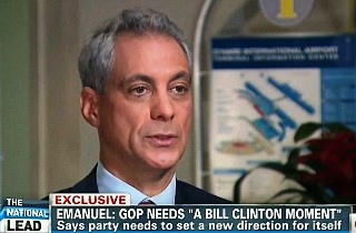 Focusing on the Republican internecine struggle, Emanuel advised the GOP to seek out and embrace a “Bill Clinton moment.”