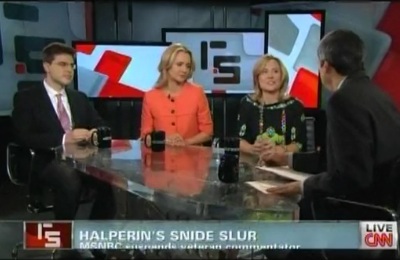 In the end, Halperin’s remark should have little long-term effect. He’s firmly entrenched in the mainstream media, and weaknessesin his commentary notwithstanding, he’s well-respected for his workhorse reporting. If it helps, he has a decent case to make that MSNBC reneged on a verbal contract that Scarborough made with him on the air.