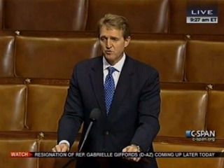 Arizona Republican Rep. Jeff Flake took time this morning to share a few thoughts on his friend and colleague, Rep. Gabrielle Giffords, and to voice support for her border security bill.