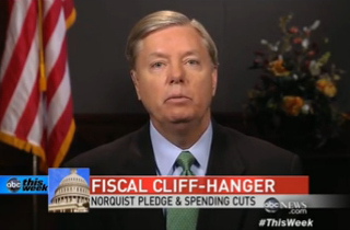 Appearing on ABC’s This Week on Sunday morning, Sen. Lindsey Graham (R-SC) joined the chorus of Republican lawmakers who say they are willing to break anti-tax activist Grover Norquist‘s long-standing pledge to not increase tax revenues if it means achieving a deal that included entitlement reform.