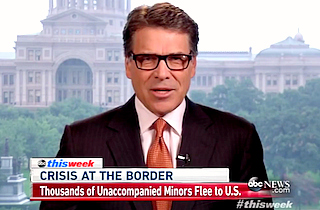 Texas Governor Rick Perry appeared on This Week with George Stephanopoulos and told cohost Martha Raddatz that he didn’t believe President Barack Obama cared about his constitutional duty to secure the border, despite repeated questions from Raddatz about a 2008 law requiring immigrants from non-contiguous nations be allowed in the country.