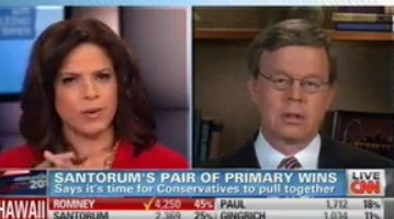 Anchor Soledad O’Brien then asked Sen. Talent about the message that all of that outspending sends. “So, outspending Rick Santorum, over $2 million is what your campaign spent on TV ad spending,” O’Brien said, “to Rick Santorum’s just under $400,000, at some point there’s a different kind of math, maybe not delegate math, that says ‘That’s bad math. He won and spent under $400 million. We took a $2 million hit.'”