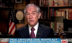 In an interview with Candy Crowley on CNN’s State of the Union on Sunday, Ron Paul slammed the 1964 Civil Rights Act, saying it “undermine[d] the concept of liberty” and “destroyed the principle of private property and private choices.”