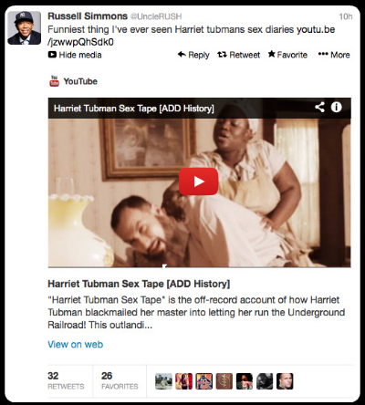 On the first day of his “All Def Digital” YouTube page, mogul Russell Simmons managed to anger nearly everyone with a video parodying abolitionist hero Harriet Tubman with a “sex tape.”