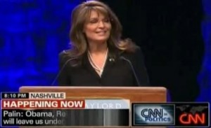 Sarah Palin spoke tonight at the national Tea Party Convention and had some predictably harsh words for the White House. “I will live, I will die for the people of America. Whatever I can do to help. This movement is the future of politics in America,” said Palin, before giving stick to President Obama.