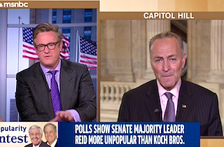 Morning Joe titular host Joe Scarborough has devoted several segments of his show lately to defending the Koch Brothers against Senate Majority Leader Harry Reid’s (D-NV) critique of them as “un-American.” On Thursday morning he demanded to know whether Senator Chuck Schumer (D-NY) believed the wealthy pair warranted the term, especially given what Scarborough described as their copious philanthropy.