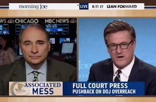 As Scarborough spoke of efforts to intimidate sources and scare whistleblowers, Axelrod recalled a discussion they had last summer. “I appeared with you, and you challenged me with the same tone, actually, on these leaks and said, ‘When is the president going to send a strong signal to people that leaking classified information won’t be tolerated?'” he related. “‘When is is he going to make people accountable for these leaks?’ … They’ve apparently interviewed 550 people and went to court and got a subpoena to do what they did. In order to do what you and others said should be done.”