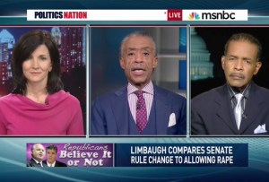 Al Sharpton said Friday night it’s now “par for the course” for conservatives to make tone-deaf remarks about rape, in the wake of comments made by Rush Limbaugh comparing the nuclear option to a circle of people voting on whether to rape women. Sharpton and his guests, Joe Madison and Patricia Murphy, condemned Limbaugh’s comments, but actually disagreed on whether the Democrats were in the right to push the red button in the first place.