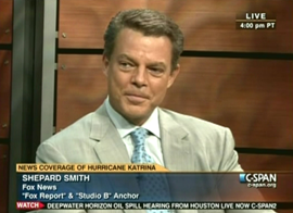 Fox News anchor Shepard Smith was the TV news representative on a panel yesterday about Hurricane Katrina, from the Newseum in Washington D.C.