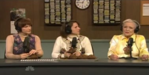 There’s more. Watch it once to crack up at the punchlines, and again to marvel at the absolute professionalism demonstrated by Gasteyer, White and fellow SNL alum Molly Shannon — their muffin-bluffin’ is perfect. A tasty dish indeed. See below.