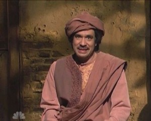 They had to do it one last time. The cold open for tonight’s episode was Fred Armisen’s Ghost of Muammar Gaddafi offering some advice from beyond the grave. “Don’t dare people to kill you,” he cautioned. Also, “never refer to your people as rats.” He also noted that it’s nearly impossible to reason with a mob, especially when everyone in it is determined to kill you.