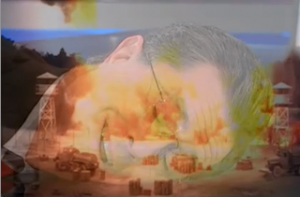 In the original version, a North Korean man falls asleep to the peaceful sounds of “We Are The Word,” karaoke-style. But soon the tone shifts, as missiles are seen raining down on what appears to be New York City.