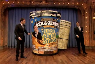 As we all know, there is a great war that is tearing our nation apart. No, viewers of Fox News, I’m not talking about the War on Christianity. And, no, viewers of MSNBC, I’m not talking about the War on Christians Who Are Just Normal Christians And Don’t Get All Up In People’s Faces About It. I’m talking, of course, about the Ice Cream War. Stephen Colbert and Jimmy Fallon used to be best friends but are now worst enemies, partially because Fallon got a Ben & Jerry’s ice cream flavor to rival Colbert’s and partially because they only signed on to be best friends forever for about six months. Since then, their battle has taken many forms like song and also animated song, but last night, on Late Night, it was full on war.
