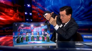 Anyway, Colbert, taking inspiration from the great Paul the Octopus, placed Megyn in a model of a debate stage and waited for her to choose the winner. And she chose…no one.