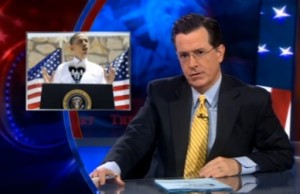 As is so often the case with Colbert, amplifying political hyperbole to absurd and comedic levels is an effective way to draw eyeballs. It is strange however when the President of the United States uses the same technique, but it seems just as effective.