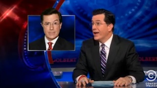 Colbert joked about the fact that he was beating Jon Huntsman, a candidate who had once specifically courted the “Colbert bump.” Colbert’s explanation was that the bump must have reflected off of Huntsman and back to him.