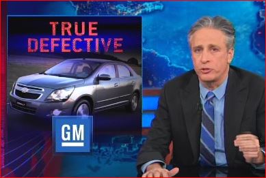 Jon Stewart took General Motors to task Wednesday night over that massive recall it announced after years of covering up a fixable safety defect, especially mocking GM for its “fuck it” approach to paying for the tiny, not-very-costly part in question.