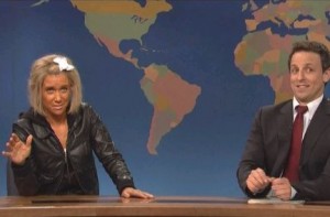 After facing accusations that she took her five-year-old kid into a tanning bed with her, the so-called “Tanning Mom” made an appearance on “Weekend Update” to tell her side of the story. She was played by Kristen Wiig in orange makeup that actually made her look better than her real-life counterpart, and was trailed by a cloud of smoke.