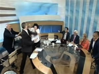 This week, while Americans were tuning into the news to watch the drama burble over the Wisconsin recall, the controversy involving Donald Trump‘s Miss USA pageant and the revelations in the New York Times that Mitt Romney‘s neighbors in La Jolla aren’t all that fond of him, Greek politicians flung water and took wild swings at each other live on the air!