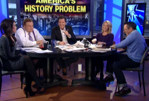 The Five today took on Bill O’Reilly‘s assertion that the failing public school system is mainly to blame for widespread ignorance in America, as well as the rise of technology in people’s lives. Eric Bolling agreed with O’Reilly, arguing that reliance on technology means no one can ever actually learn about things as basic as spelling and addition. And, in a hilarious coincidence of timing, Jimmy Kimmel also helped expose American ignorance last night with a segment interviewing people who actually believed that FDR died yesterday.