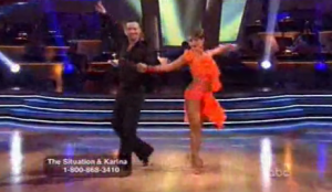 Sorrentino and his partner Karina Smirnoff danced to Taio Cruz’s “Break Your Heart” but the judged were none too pleased. Admitting that the pair hadn’t had much time to practice and appreciating Sorrentino’s compliment of his suit, Len Goodman still said that the MTV star had “the guns but not the ammunition.” Oh well.