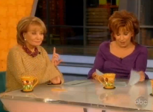 Sherri Shepherd saw this as clearly analogous to the birth control debate, arguing that the problem with the issue was “all of these men making decisions about a woman’s body,” while not understanding that birth control is used to treat many medical conditions, in addition to preventing pregnancy. She thought the debate should be reframed in that way, rather than characterizing birth control as a “lifestyle choice” (at this point Joy piped up with “It is a lifestyle choice!…Go out and do it!”). Elisabeth Hasselbeck saw it as the opening salvo in a “gender war,” and thought that men and women coming up with different ways to stick it to each other over this issue was unproductive, while Barbara Walters seemed exhausted by the issue, which she said has come up in just about every presidential election. You can see the full clip here, via ABC: