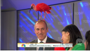 During a segment on water animals, a scarlet ibis (an type of red, exotic bird for those of you not acquainted with Ornithology) took flight and found a perch on Matt Lauer‘s head.