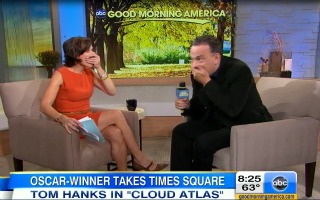 Actor Tom Hanks joined Good Morning America on Friday to promote his role in the upcoming film Cloud Atlas. After playing a clip of the film, Hanks forgot himself for a moment and blurted out a four letter word, albeit while adopting an accent. Despite the affectation to his voice, the curse word was well understood. Hanks apologized profusely for the misstep.