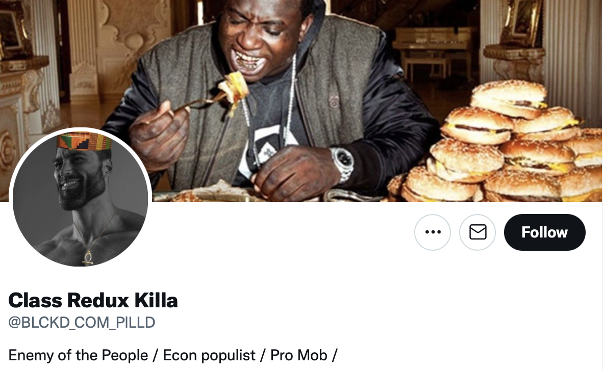 The account, which right now uses the name Class Redux Killa, brags roughly 20,000 followers, and the original tweet reads just as Carlson explained: