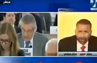 While conducting a remote interview with an Iraqi news station, Syrian political analyst Hussam Shoaib experiences the force of two car bomb explosions behind him. Syrian state news agency SANA reports that a double car bombing targeted its state television headquarters in the capital city of Damascus.