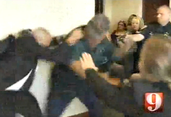 WFTV-Channel 9 in Orlando reports that a brawl broke out in the Osceola County Courthouse minutes after the postponement of a “stand your ground” hearing in the first-degree murder case of a Florida man accused of fatally shooting two brothers outside a St. Cloud bar.
