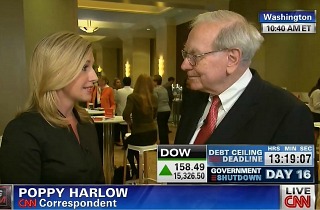 CNN reporter Poppy Harlow asked whether those who suggest that default on America’s debt is unlikely because the Treasury Department can theoretically prioritize payments to U.S. bondholders, Buffett rejected that notion.