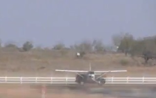 This video footage shows the nail-biting moments as a small plane prepares to land at the Northwest Regional Airport in Roanoke, Texas — right as a car comes driving by.